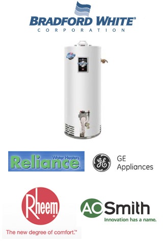 In most cases, when you call before 12:00 noon, Mon.-Sat, we can repair or replace your existing gas or electric water heater the same day you call. We stock Bradford White Water Heaters however, we can repair ALL BRANDS and ALL MODELS of water heater including: Bradford & White, Reliance, Rheem, AO Smith, GE, Whirlpool, and more.
